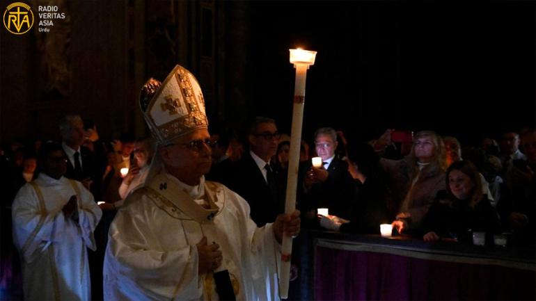مورخہ 4اپریل2026کو مقدس پطر س کے احاطہ میں ایسٹر ویجل ماس کے دوران پاپائے اعظم لیو چہاردہم نے مومنین سے خطاب کرتے ہوئے اس بات پر زور دیا کہ نجات کی اس پوری تاریخ کا مرکزی پیغام یہ ہے کہ خدا گناہ کی سختی جو تقسیم اور ہلاک کرتی ہے،کا جواب محبت کی قوت سے دیتا ہے، جو جوڑتی اور زندگی کو بحال کرتی ہے نیز عیدِ پاشکانفرت کو دور کرتی، ہم آہنگی کو فروغ دیتی اور طاقتوروں کو جْھکا دیتی ہے۔